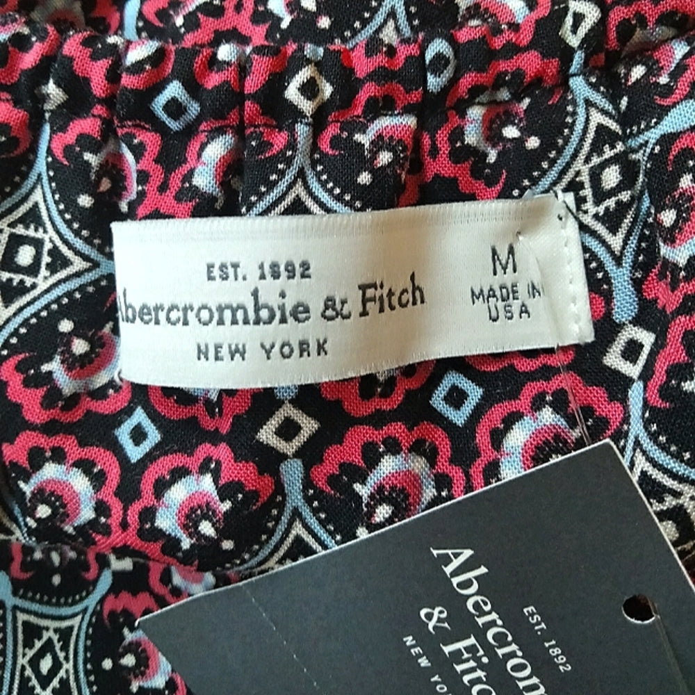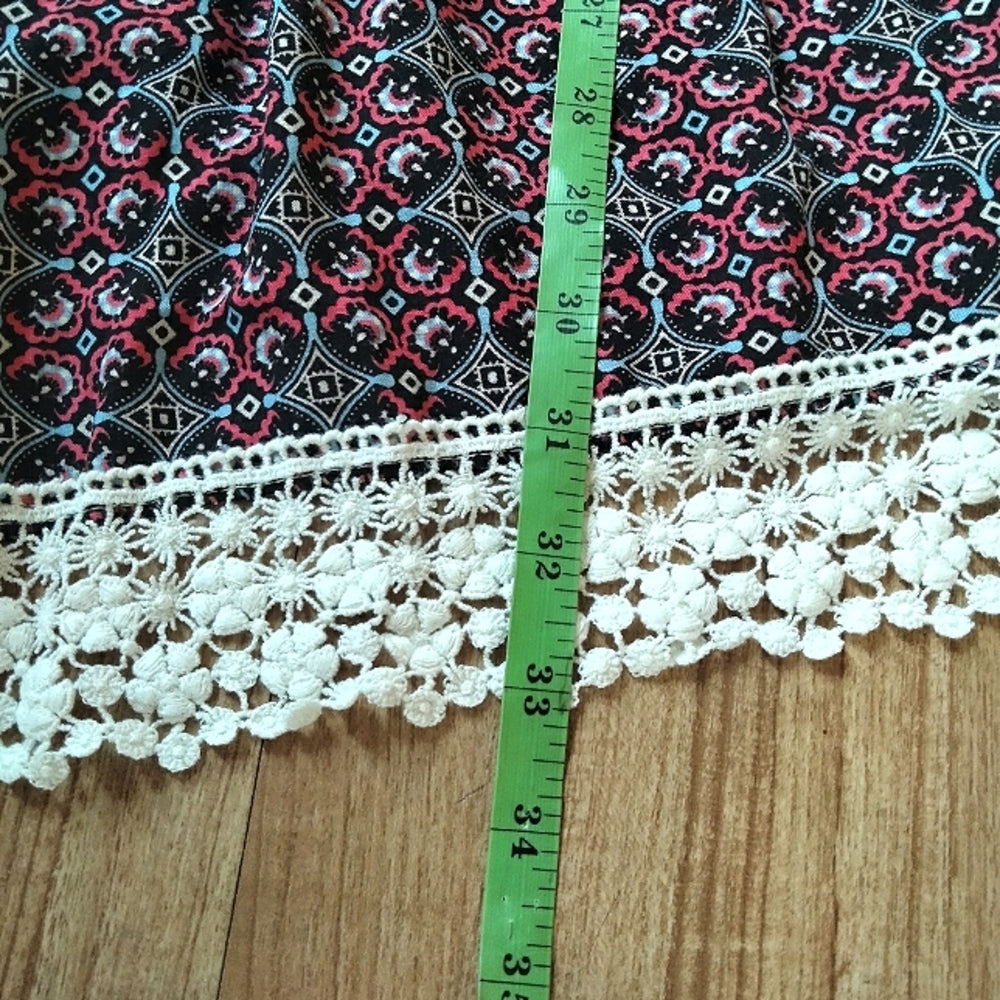 Abercrombie & Fitch Boho Black and Pink Cream Lace-Trim Romper Size Medium
