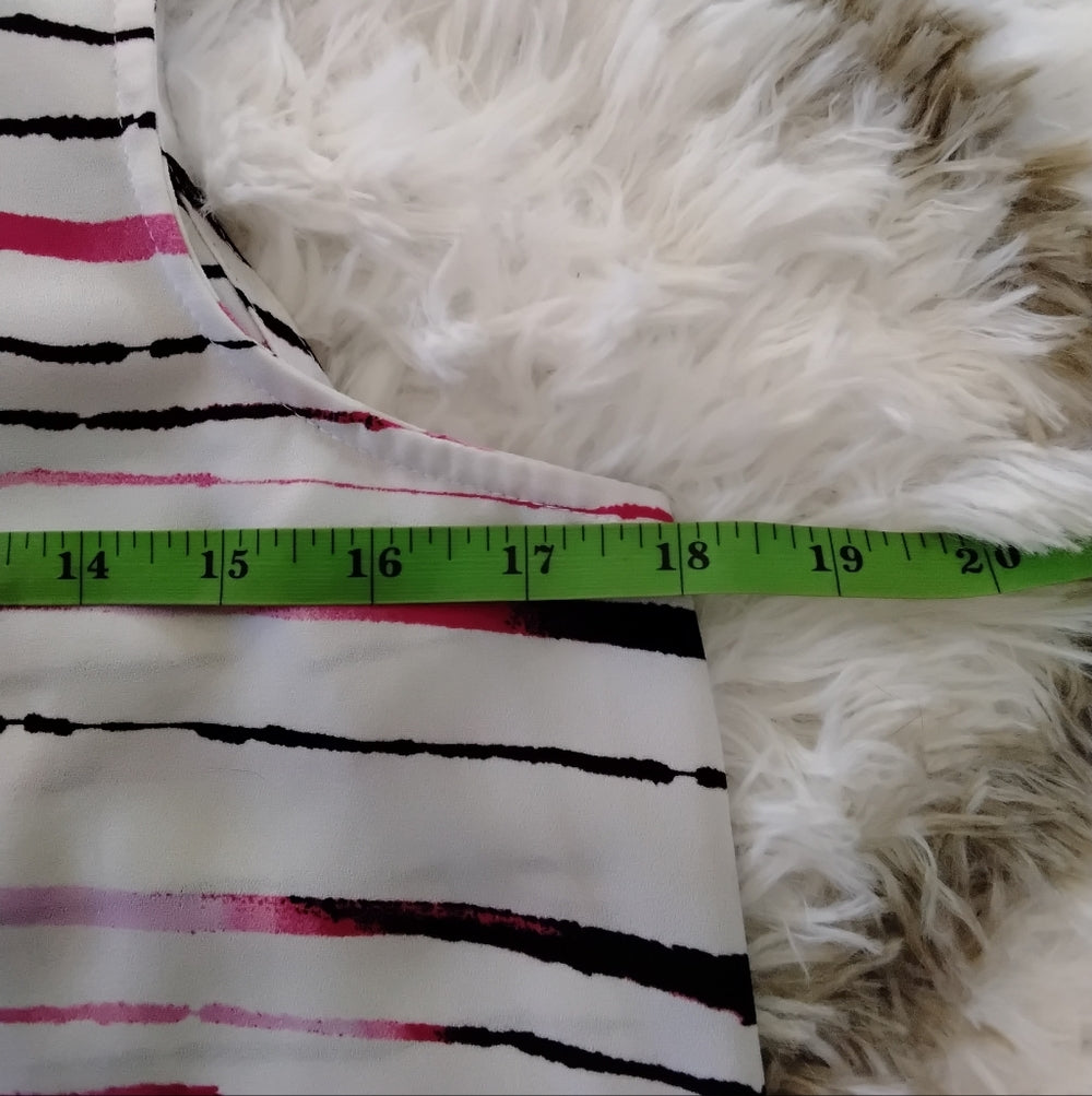 APT. 9 Pink, White, & Black Petite Striped Hi-Lo Pleated Tank – Office Chic PS