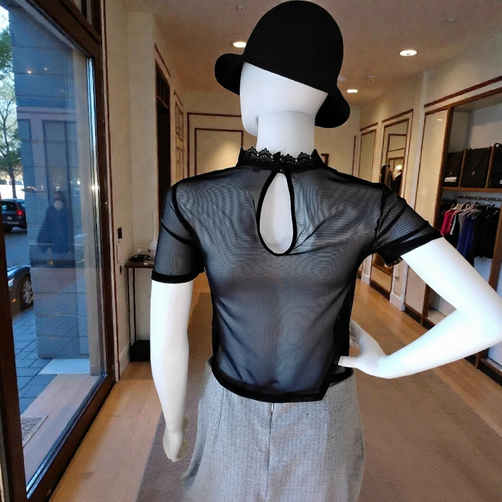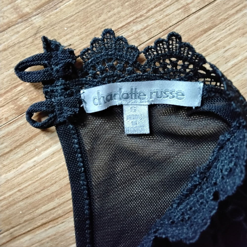 Charlotte Russe Sheer Floral Lace Keyhole Top – Black Elegance - Sz Small