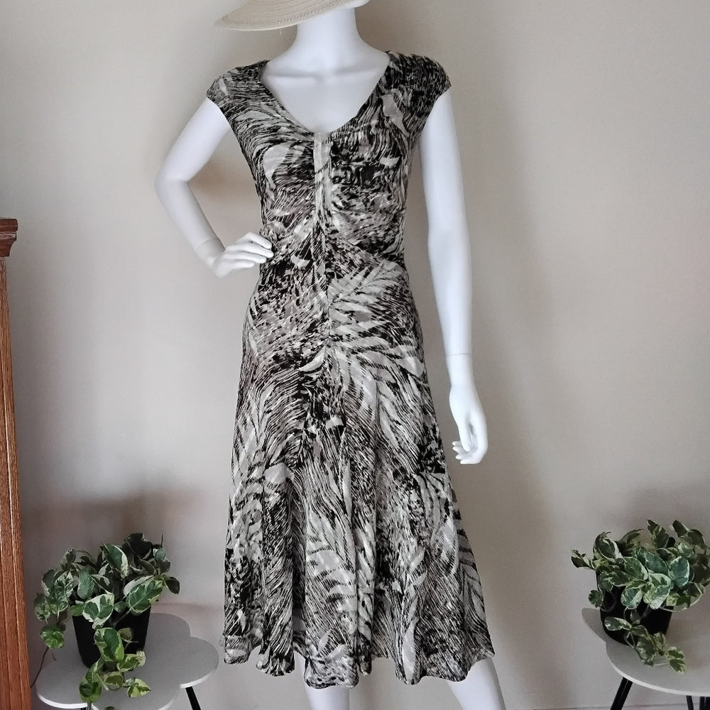 Evan-Picone Brown & Cream Abstract Midi Dress – Size 10
