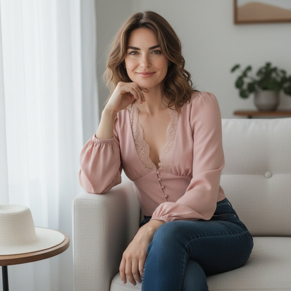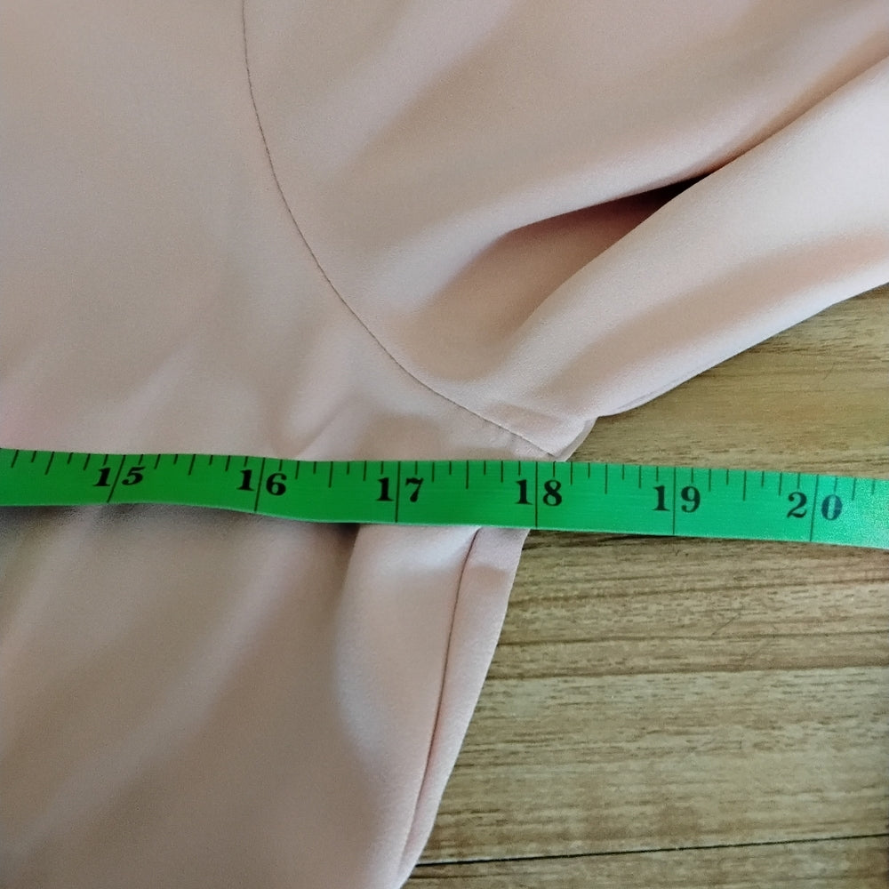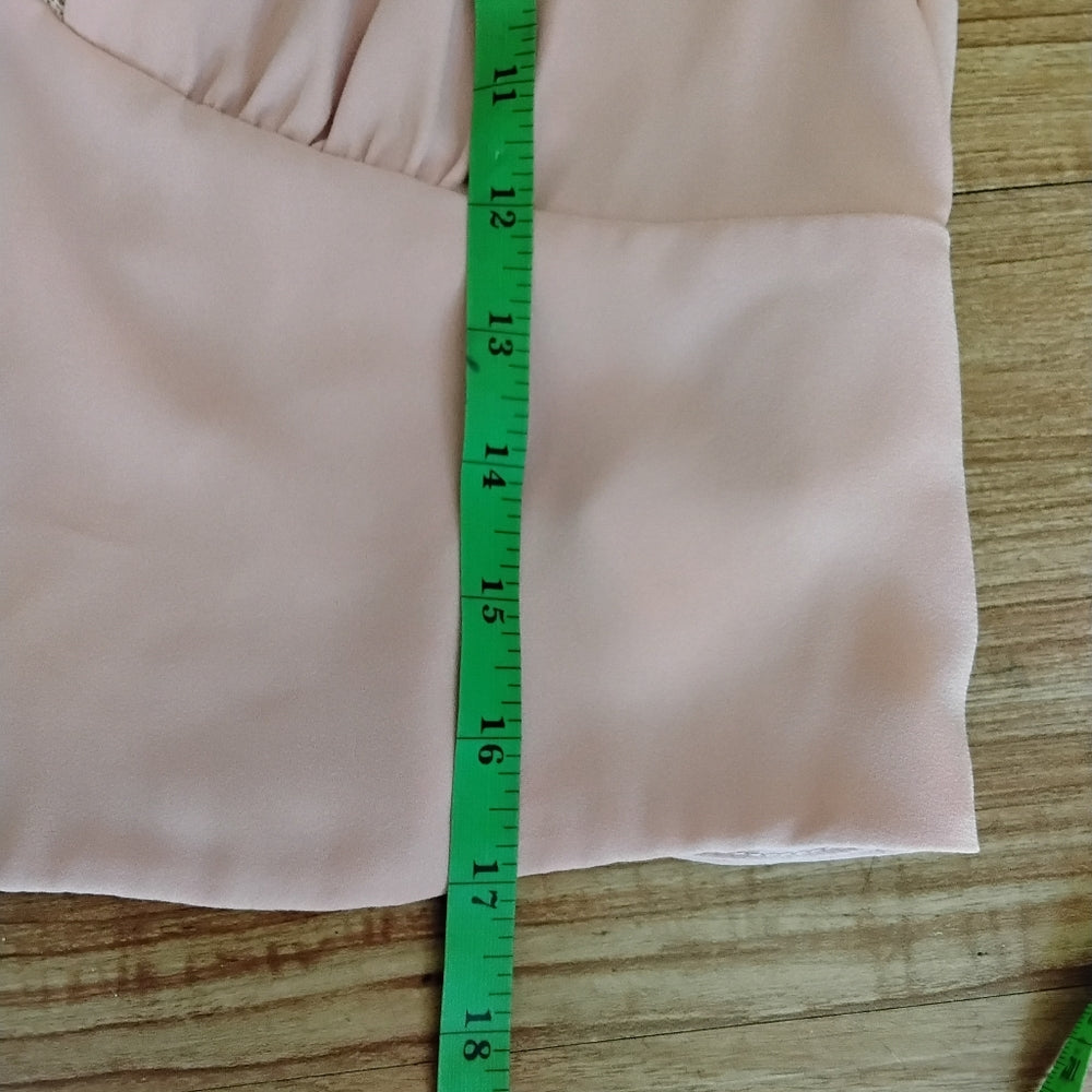 Romantic meets casual in this soft pink Forever 21 blouse, featuring a deep lace-trimmed V-neckline, button front, and flattering gathered waist. The lightweight polyester shell and lining offer breathable comfort, while the sheer elegance of the lace detail adds a feminine touch. Perfect for brunch, date night, or layering under a cardigan.