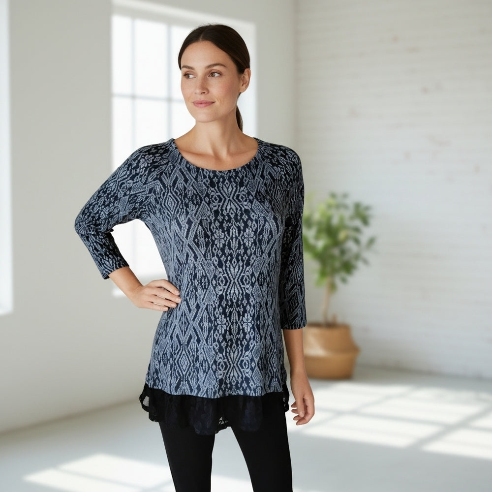 French Laundry Geometric Lace-Trim Tunic – Size S