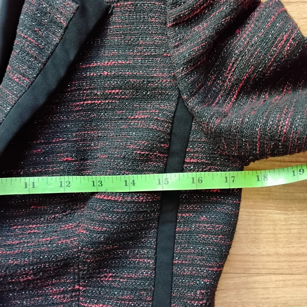 Kasper Tailored Deep Red & Black Trim Textured Blazer Sz 2P