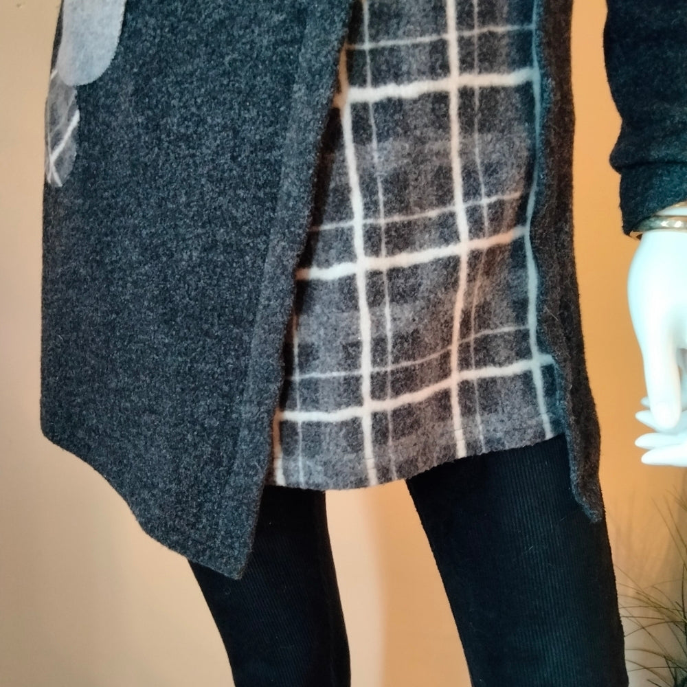 Lily London Super Warm & Cozy Cowl Neck Dress with Abstract Plaid Accents Sz Medium
