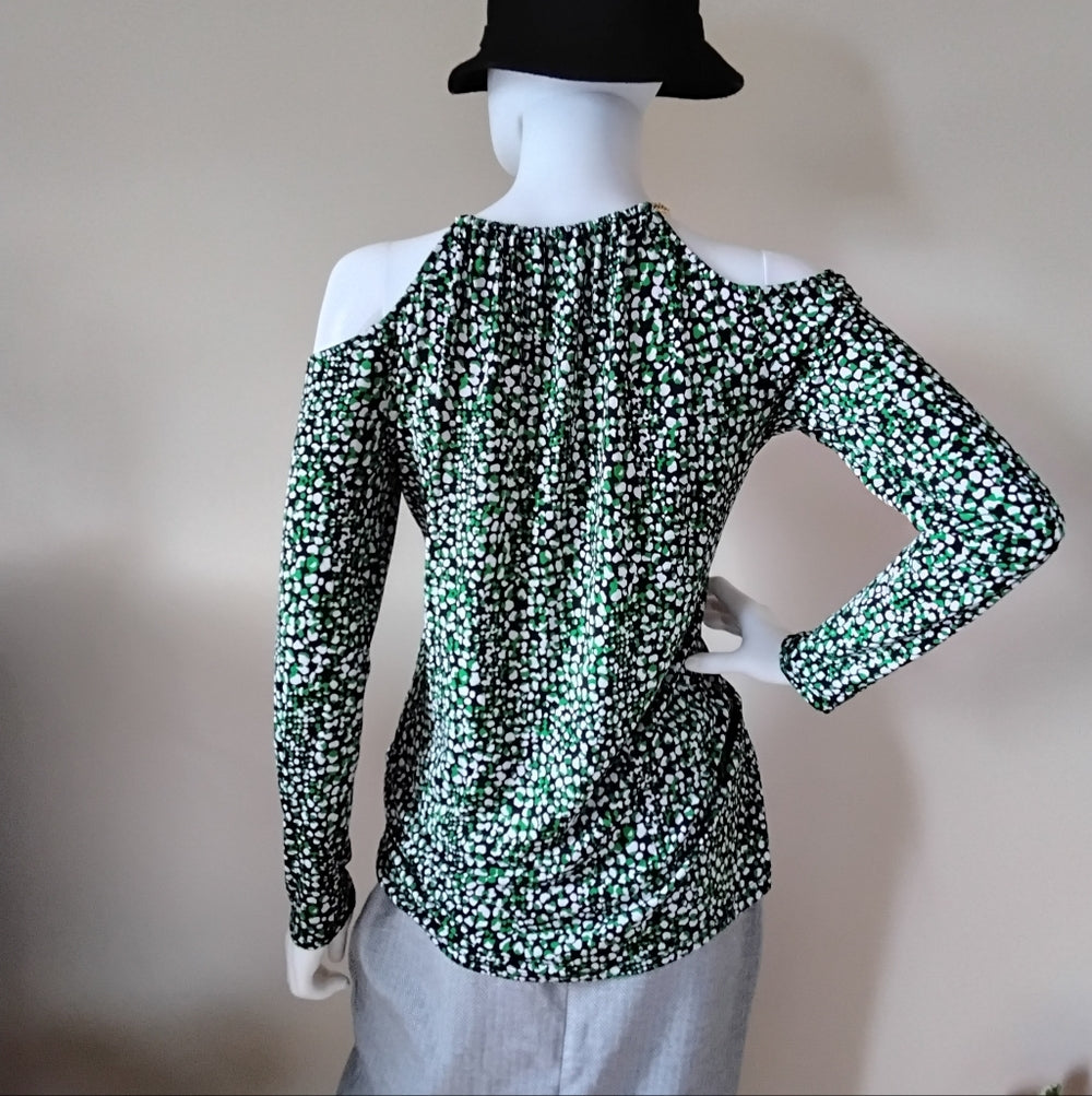 Michael Kors Abstract Green & Black Gold Chain Detail Blouse Sz Small NWOT