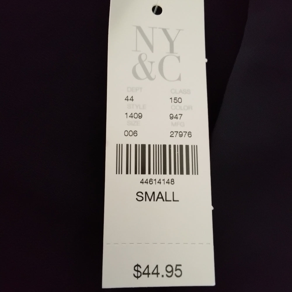 NY & Company 7th Avenue Navy Bow Blouse – Sheer Flutter Sleeves – Size S NWT
