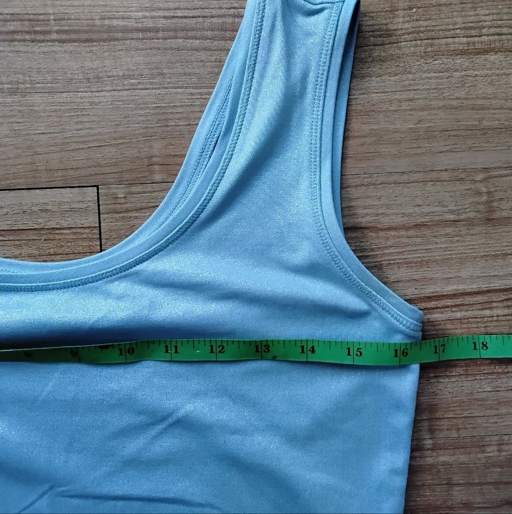 White House Black Market Light Blue Sleeveless Shimmer Top Sz Medium